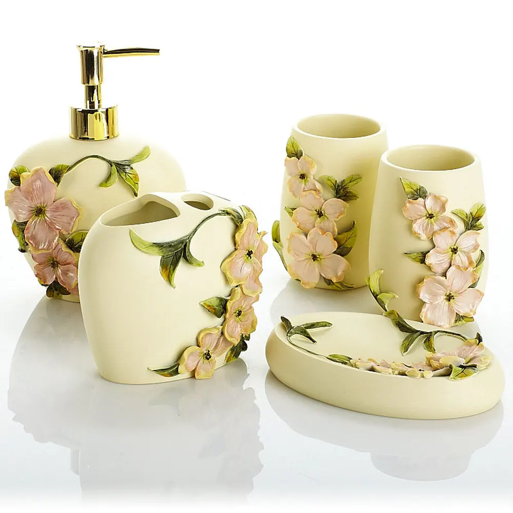 Get Bathroom-Supplies Wash-Ware Black Wash-Lo726241 Tea-Flower Five-Piece Garden Resin American only US $86.00 with Free shipping cost